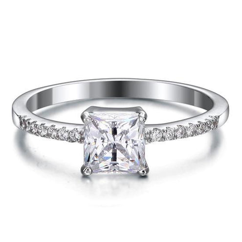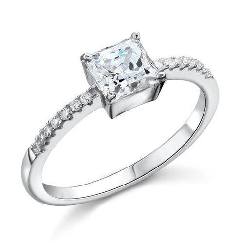 - 1 Carat Princess Simulated Diamond Engagement Sterling 925 Silver Ring