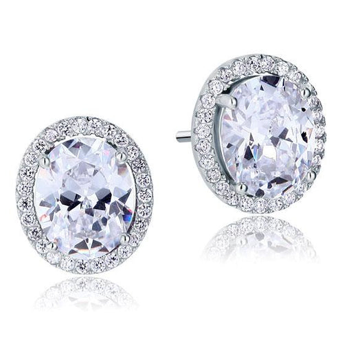 - 3 Carat Oval Cut Simulated Diamond Stud 925 Sterling Silver Earrings