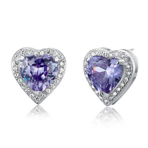 - 3 Carat Simulated Diamond Purple Sapphire 925 Sterling Silver Heart Stud Earrings