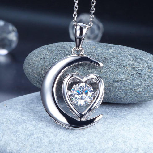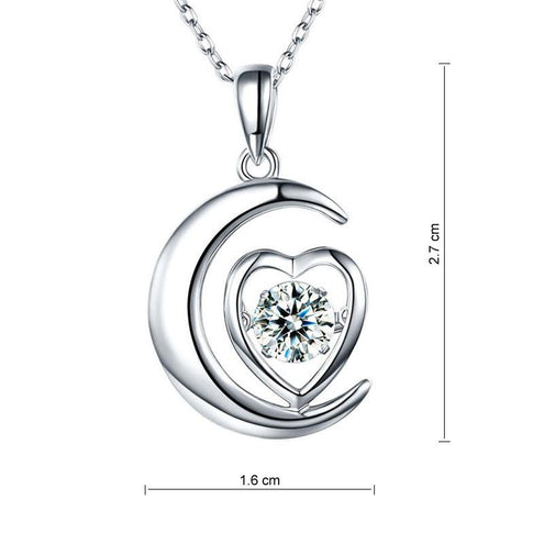 - Dancing Stone Moon Heart Pendant Necklace 925 Sterling Silver